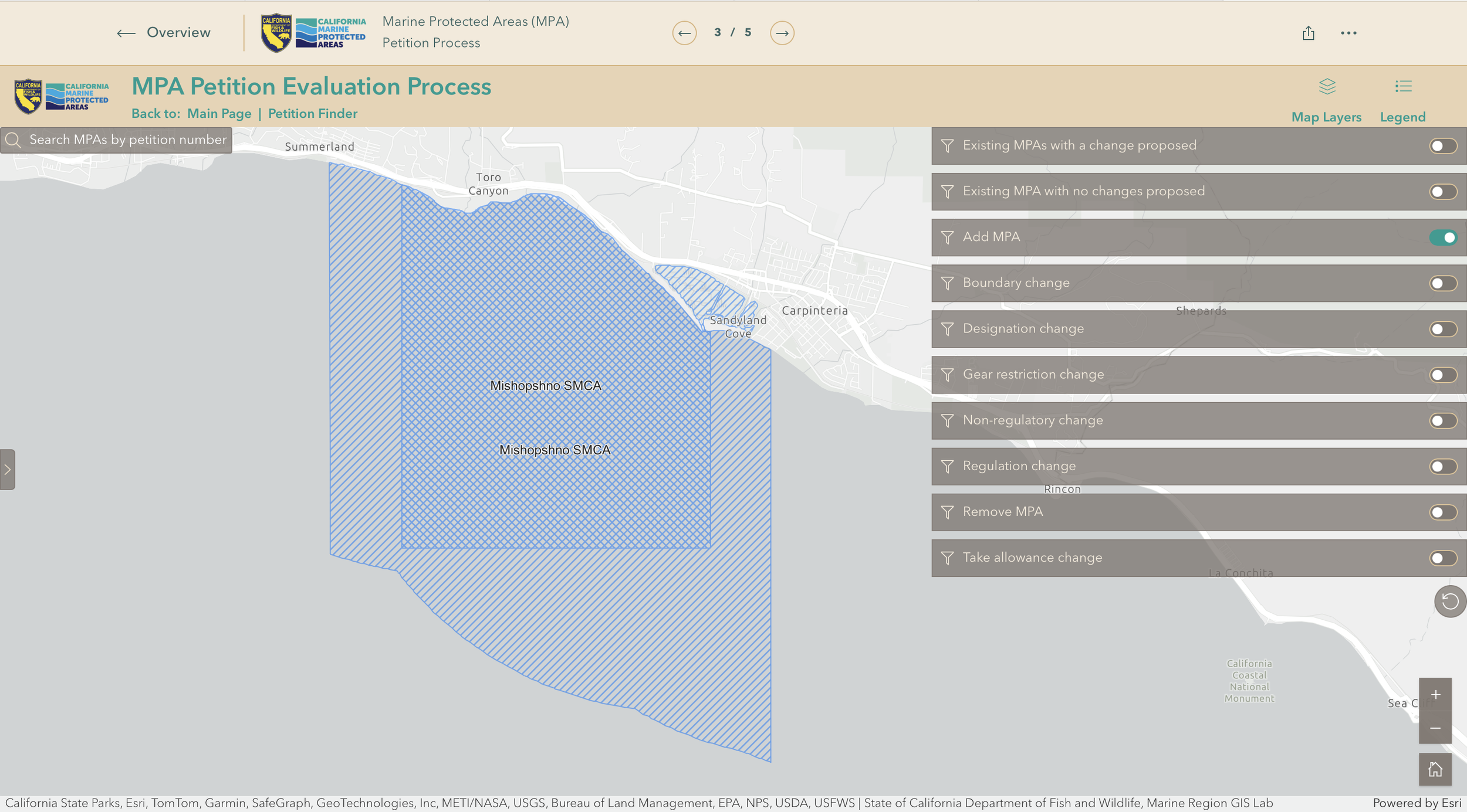 At their February 14-15, 2024, meeting, the California Fish and Game Commission (CFGC) referred 20 Marine Protected Area (MPA) regulation change petitions to the California Department of Fish and Wildlife (CDFW) for review, evaluation, and recommendation. In addition, the CFGC requested CDFW develop a proposed approach to evaluate the petitions to discuss at the Marine Resources Committee (MRC) meeting on March 19, 2024. After discussion and input from interested stakeholders, the MRC recommended approval of CDFW’s proposed 3-phase approach to evaluate MPA petitions.
